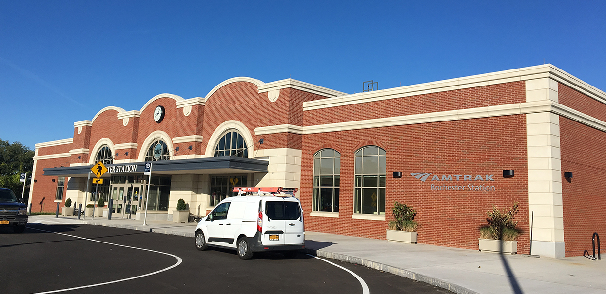 Sowinski Sullivan was the architect on a team for the planning and design of the new Station . The team worked with the NYSDOT to evaluate requirements by Amtrak, CSXT, and Adirondack Trailways requirements to develop a plan for replacing the existing intercity bus and Amtrak services that sat on adjacent sites. The facility consists of a new station building, retail space, a below grade passenger concourse, platforms, baggage, and freight facilities, expanded parking capacity, a community bike share, and public open space with opportunities for public art installations. The track and platforms were upgraded to improve both passenger and freight operations at the station.