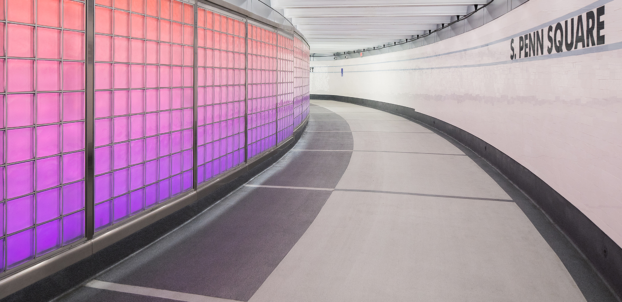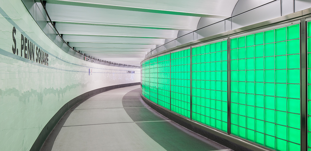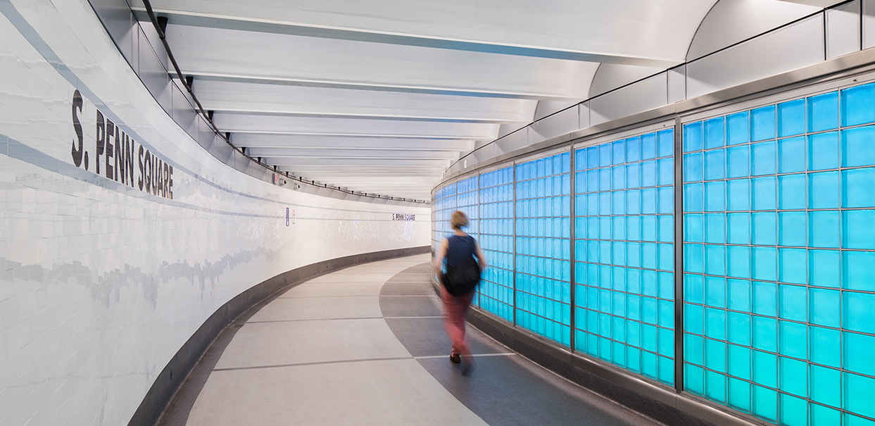 Sowinski Sullivan has been tasked with visioning and leading the design of SEPTA's underground pedestrian concourses. The SEPTA Pedestrian Concourses in Center City Philadelphia are a major urban transportation amenity. These underground passageways and chambers not only provide access to the transit system but also offer 500,000 square feet of walkable corridors sheltered from urban traffic and inclement weather. Working with a team that includes Penn Praxis, Penn Civic Engagement, and others, Sowinski Sullivan has developed a master plan, a series of visioning designs, and detailed designs for implementation over the next six years through the agencies' general design contracts. The goals for these improvements are to enhance safety and security, create a sense of geographic place and connection to the street, improve wayfinding and navigability, bring natural light and ventilation into the concourses, use durable and easily maintained finishes, and establish branding for the concourse.