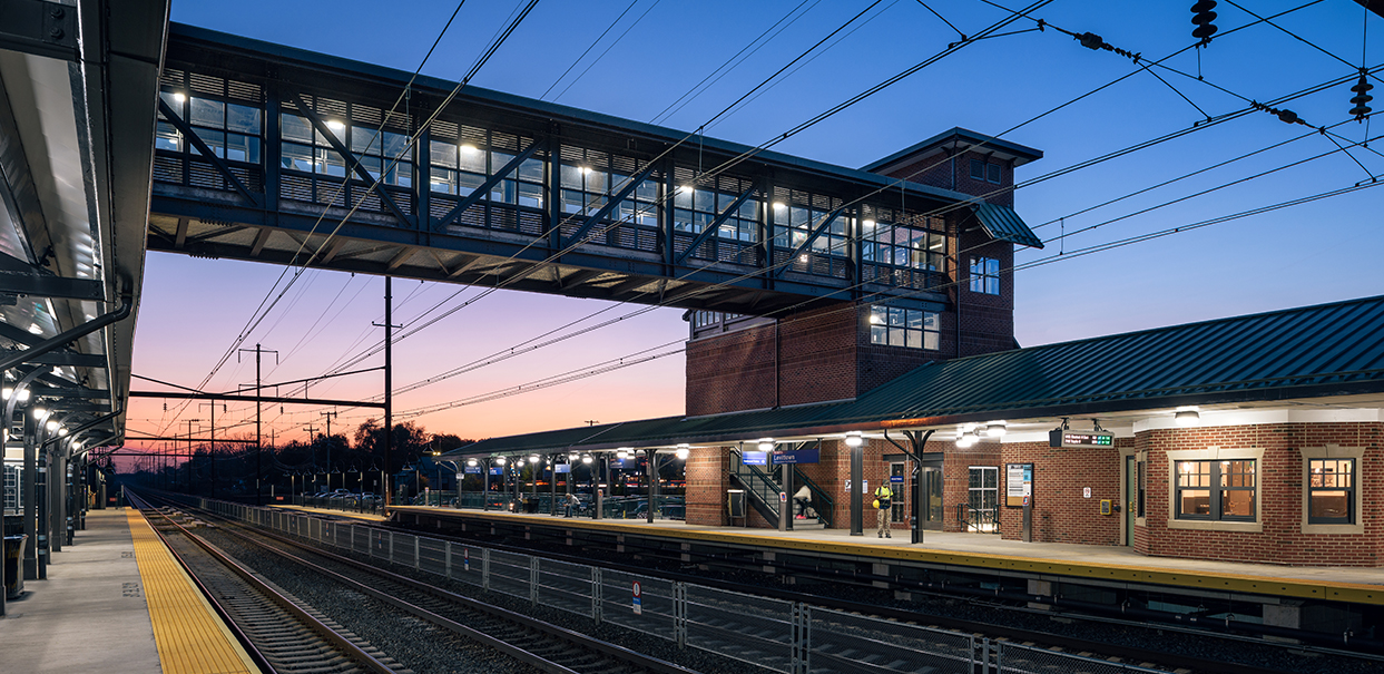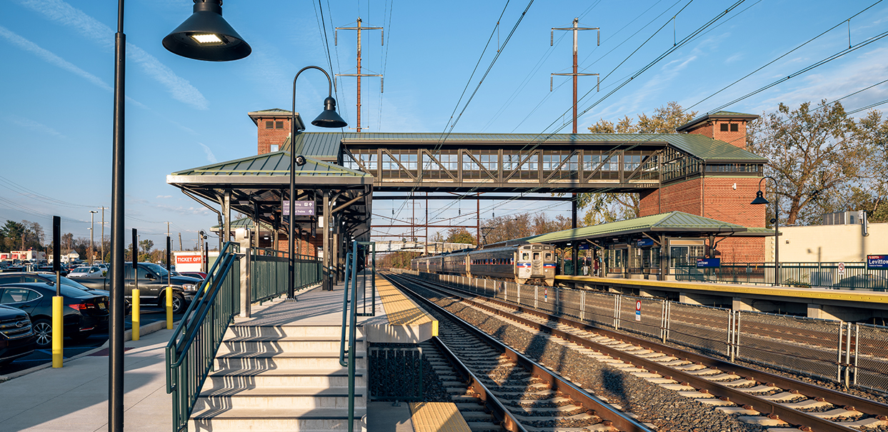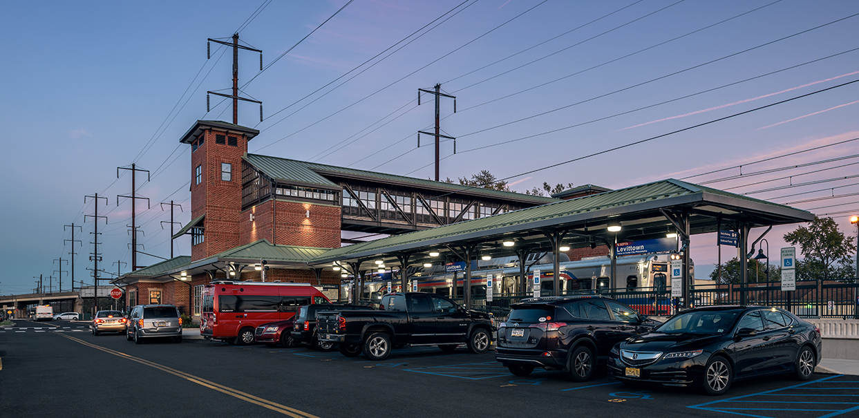 Sowinski Sullivan was the architect for the renovations at Levittown Station. The improvements consisted of replacing the station building, constructing a new bus loop and bus shelters in close proximity to the station building, reconfiguring the existing parking lot to accommodate bus access, and constructing inbound and outbound high-level platforms. It also involved construction of a new pedestrian overpass and stair towers with machine-room-less elevators, and canopies, replacing the sump pump, and making ADA accessibility improvements, including ADA compliant restrooms, signage, and lighting. The project also included the design of a 1,200-car parking deck with an overpass to the station to be built in a later phase. In addition, a new pedestrian overpass will replace the existing pedestrian tunnel. As part of this project, Sowinski Sullivan also interfaced with Amtrak because the construction was within the constraints of the Northeast Corridor.