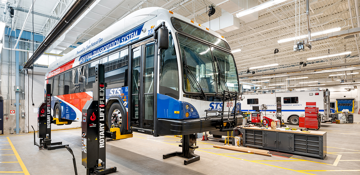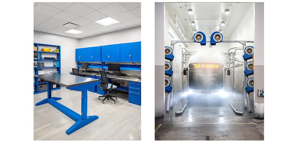 Sowinski Sullivan provided final architectural design for the new 93,000-square-foot building. The facility consists of approximately 13,500-square-feet of administrative and operations areas, along with maintenance and storage for fixed-route, shared-ride, and passenger vehicles. This maintenance space, including the circulation area, is approximately 52,000-square-feet and the interior bus storage for all STS vehicles is approximately 28,400-square-feet. The new facility consolidates all STS functions into one location which will improve operational safety and efficiency.