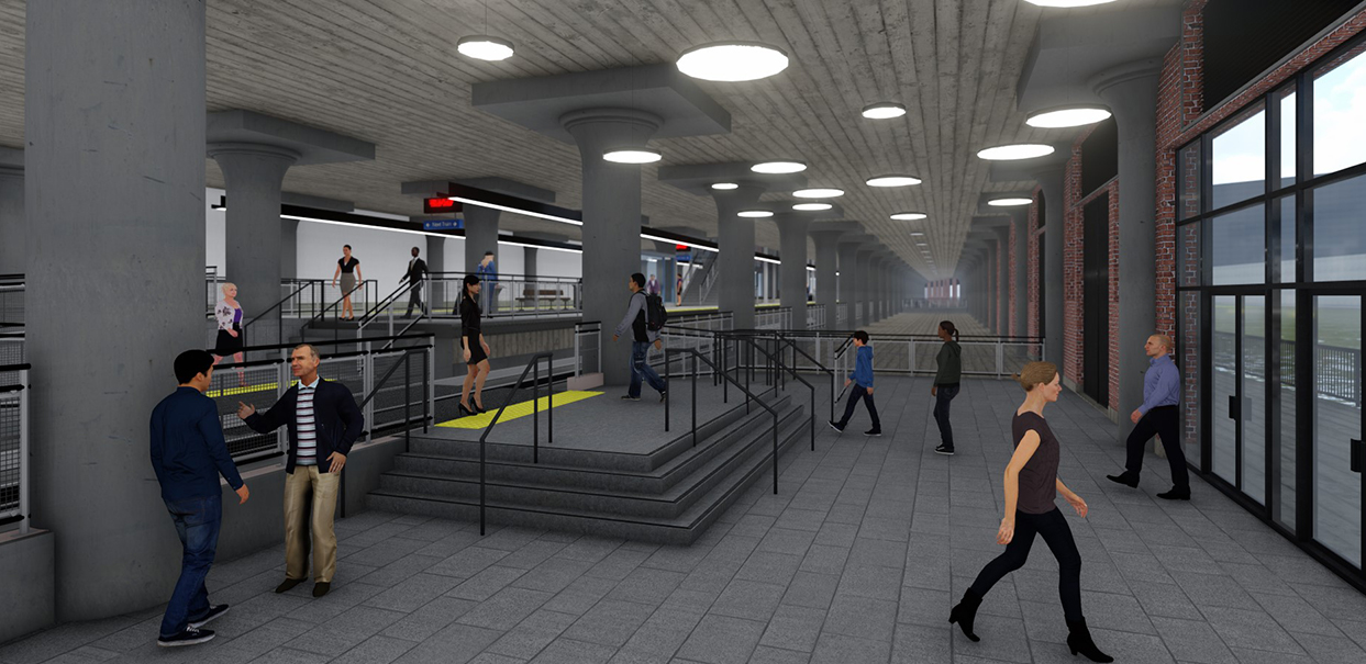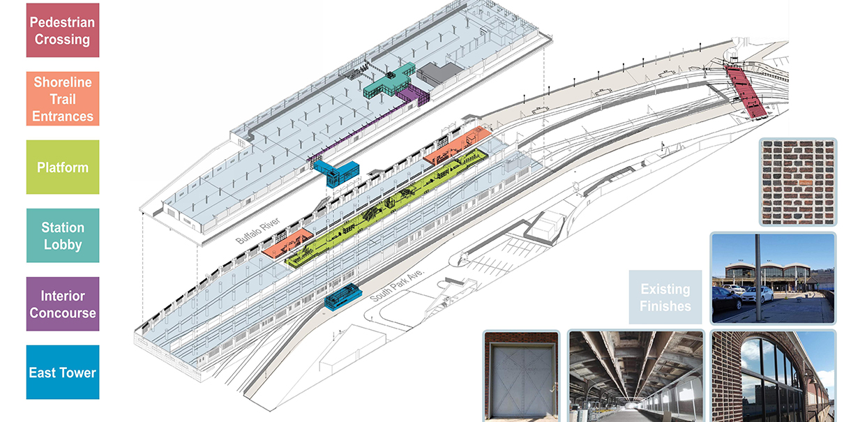 Sowinski Sullivan is the architect leading the station team developing a new transit station at the existing terminus of NFTA’s Metro Rail LRRT line. The project extended light rail revenue service to the DL&W Terminal, which is currently used by NFTA as a yard and shop facility. The project created a new, full-accessible passenger station with a high-level platform, heated waiting areas, modern finishes and lighting, and other amenities. Concurrently, the design considers Transit-Oriented Design and placemaking opportunities throughout the Terminal building and along the adjacent waterfront, as part of a city-wide goal of revitalizing this neighborhood.