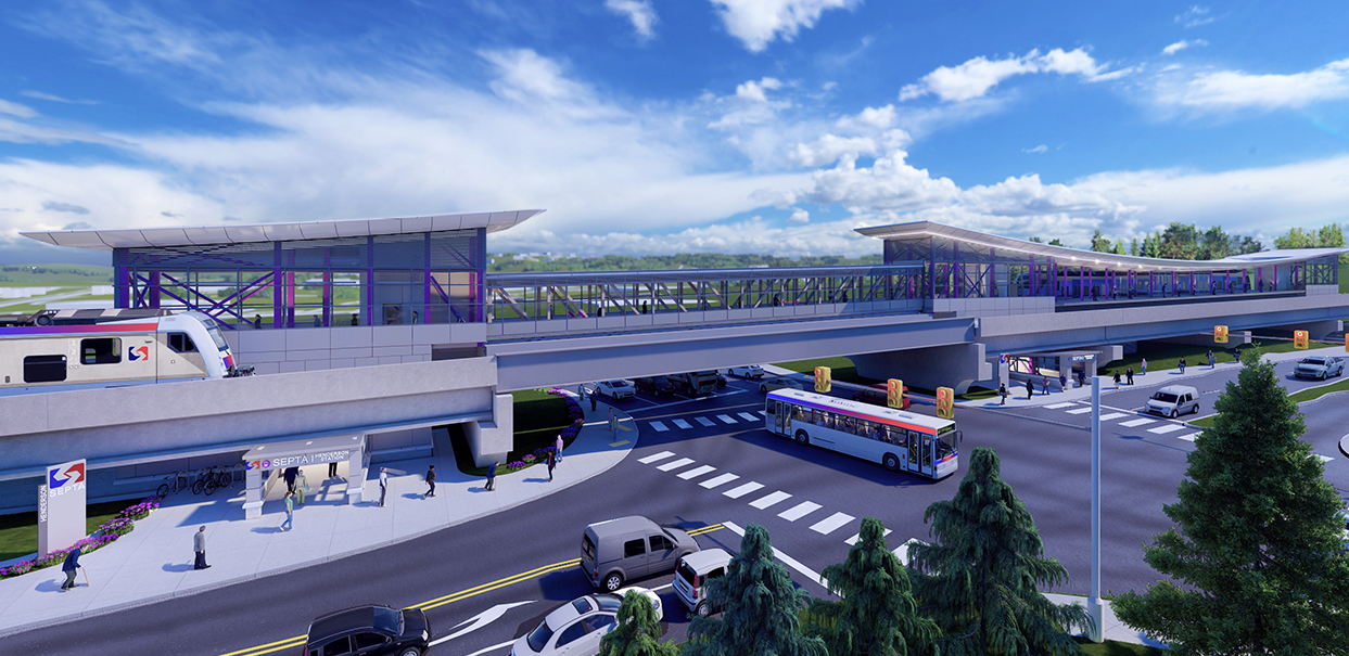 Sowinski Sullivan (SSA) is providing preliminary architectural and mechanical services for the design of five (5) new stations on the proposed extension of the Norristown High Speed Line (NHSL) through King of Prussia. SEPTA’s goals, by extending the Norristown High Speed Line (NHSL) through King of Prussia, are to provide a completely exclusive guideway system coupled with improvements at 69th Street Terminal that will enhance mobility between the regions’ two major employment centers and, specifically, to provide faster, more reliable public transit service to the King of Prussia area. This new service will provide improved transit connections from the entire region to King of Prussia, the second largest economic generator in the area. This improved connectivity – to residential and business districts – will serve existing transit riders and new transit patrons.